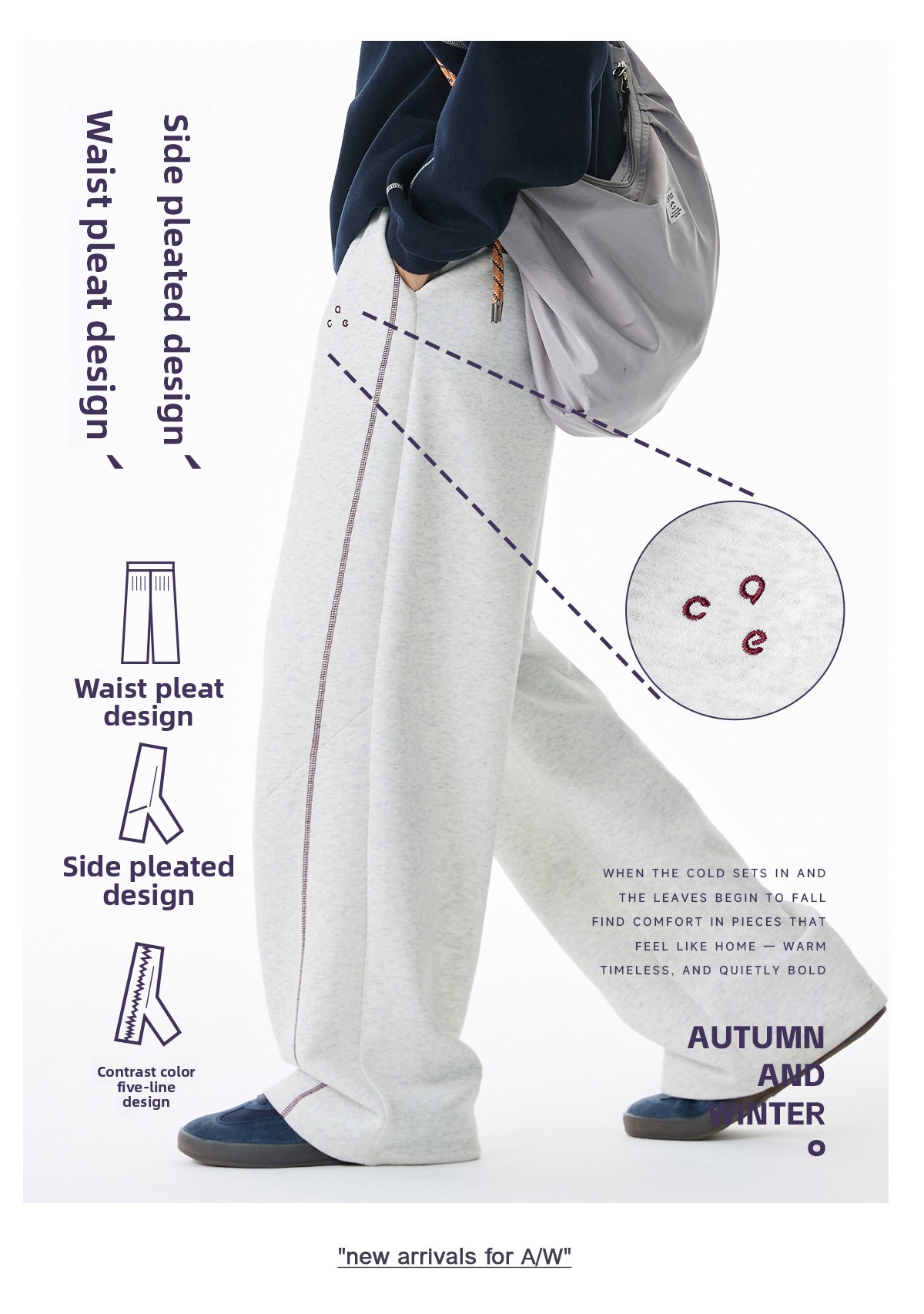 Straight-Leg Loose-Fit Sweatpants with Contrast Stitching and Elastic Waist for Everyday Comfort