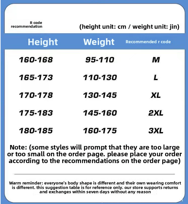 Sizes: M, L, XL, XXL, XXXL